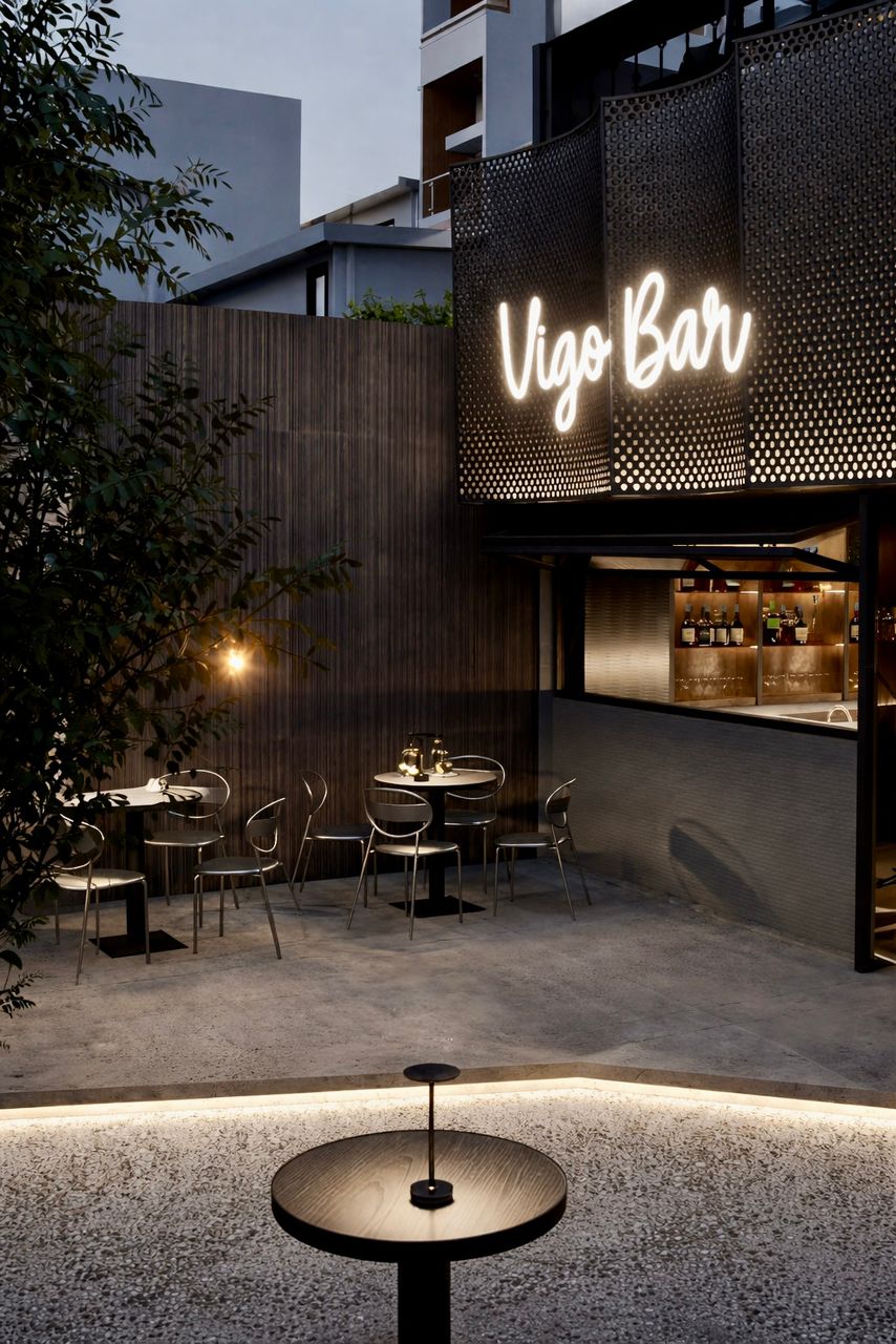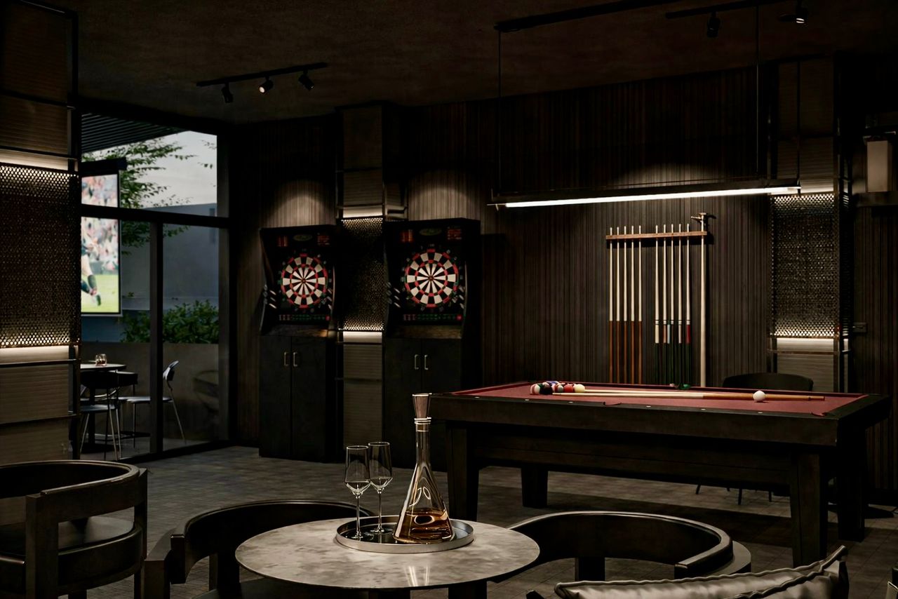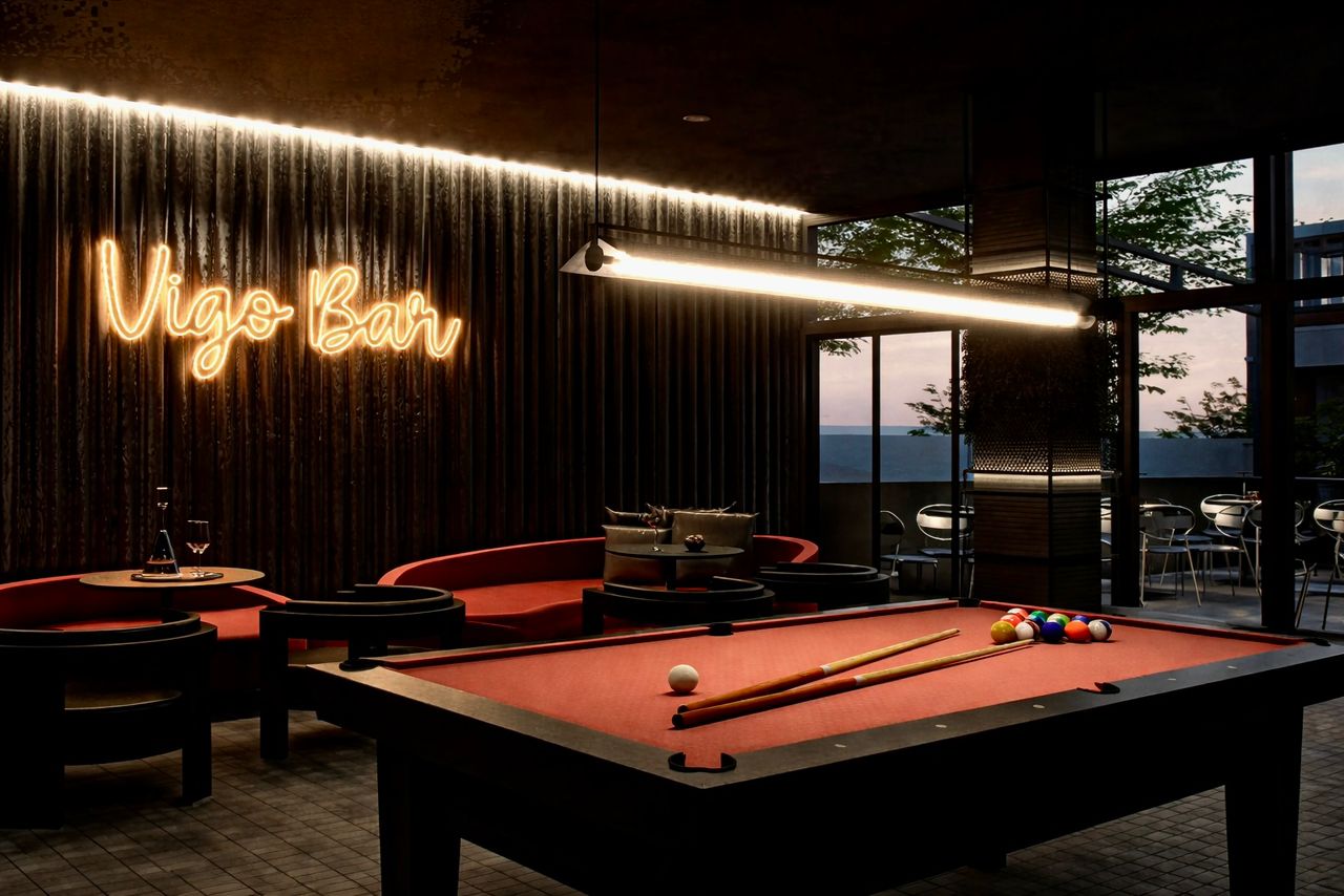 A classic retro-inspired bar concept enriched with lush greenery, blending timeless charm with a warm, inviting atmosphere.