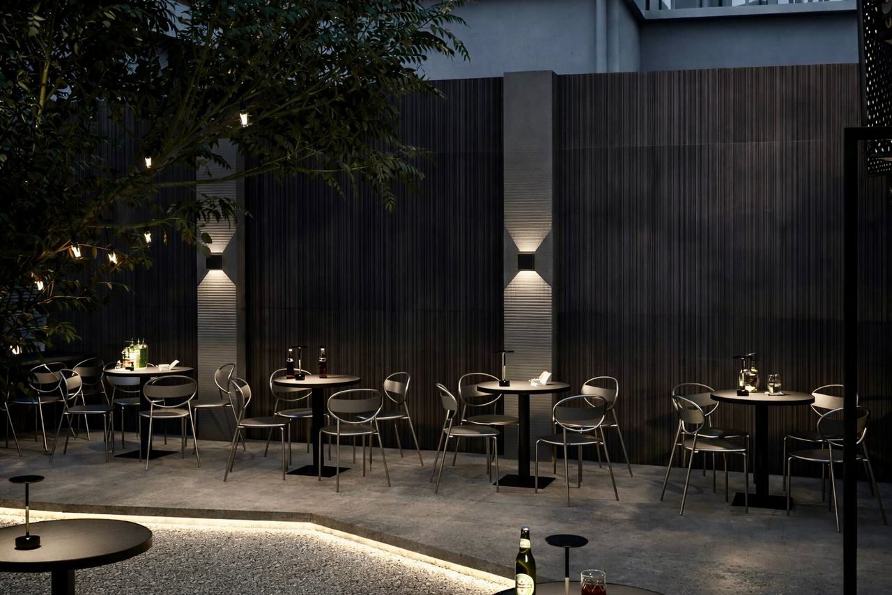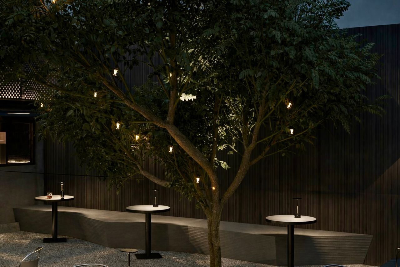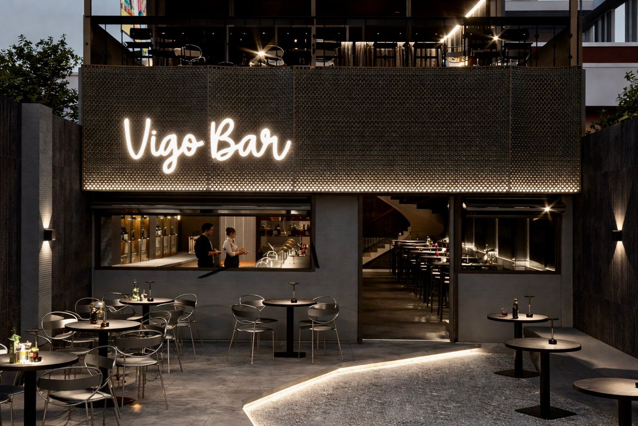 A classic retro-inspired bar concept enriched with lush greenery, blending timeless charm with a warm, inviting atmosphere.