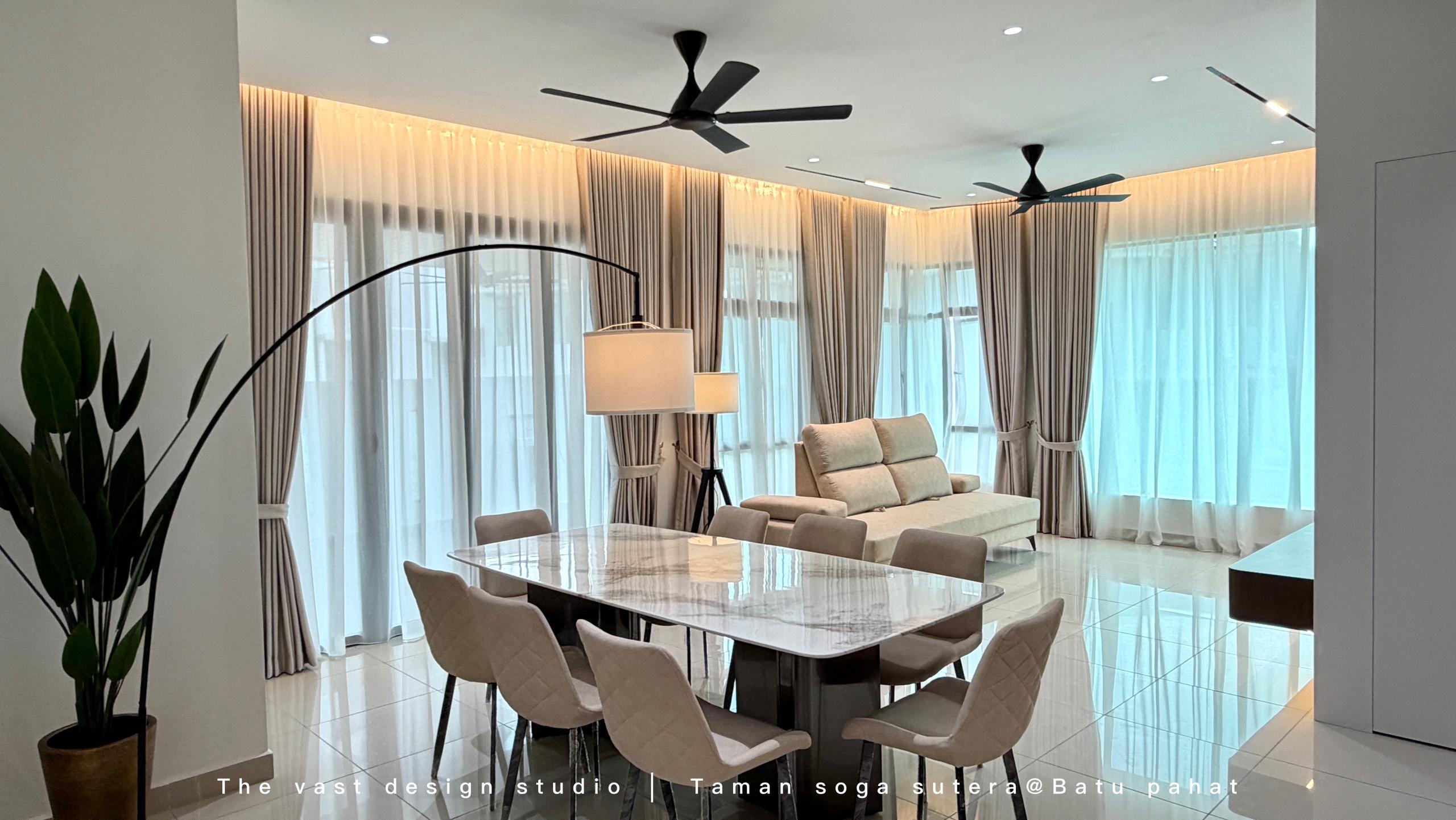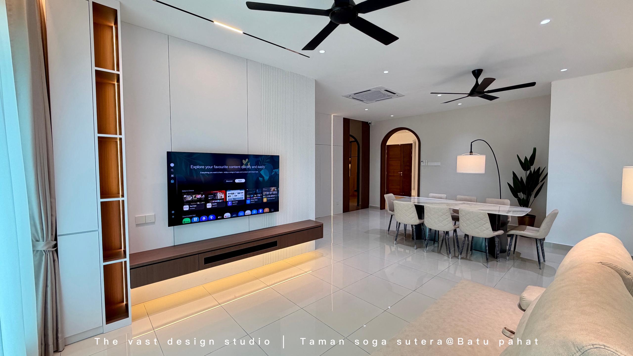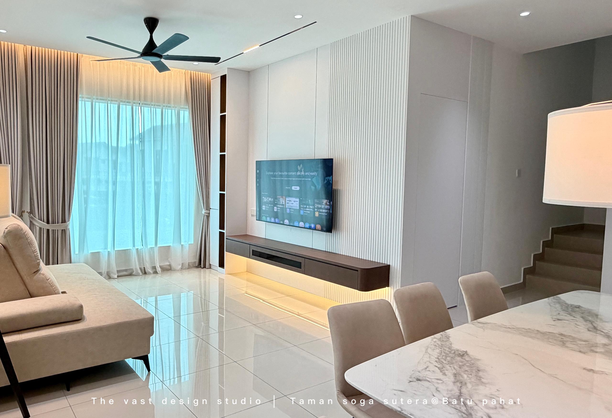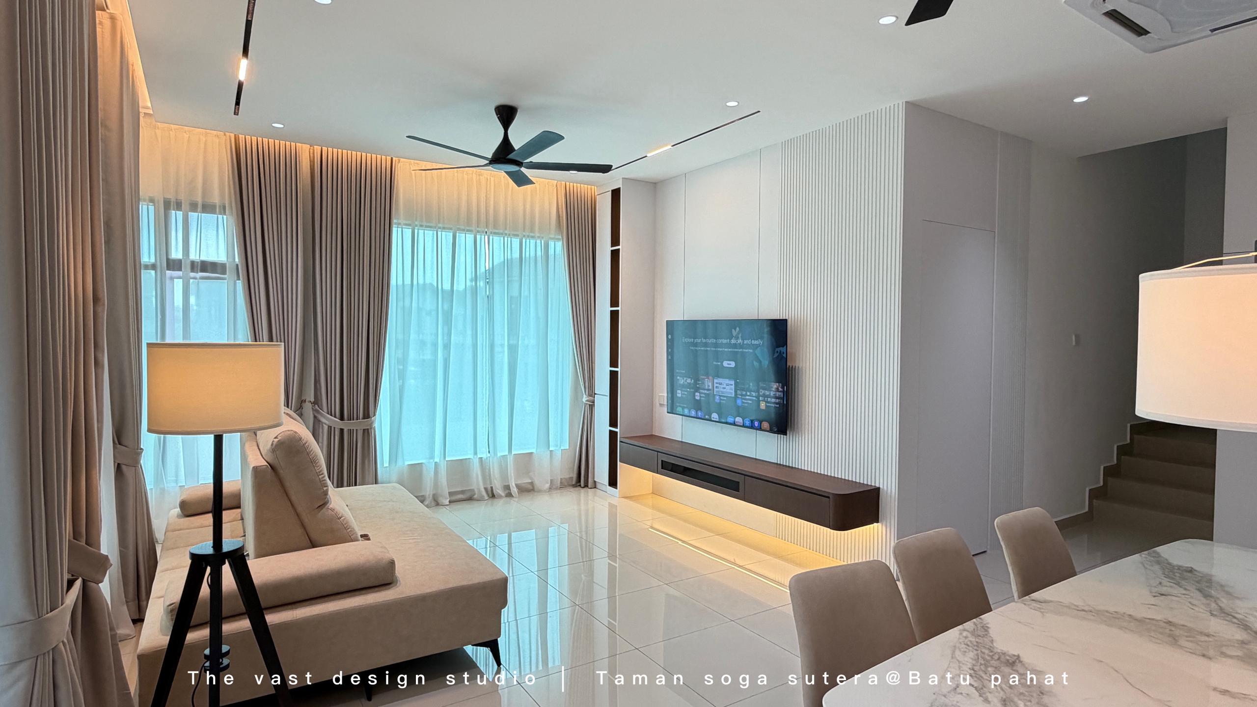A minimalist interior concept with clean lines, neutral tones, and a calm, modern living atmosphere.